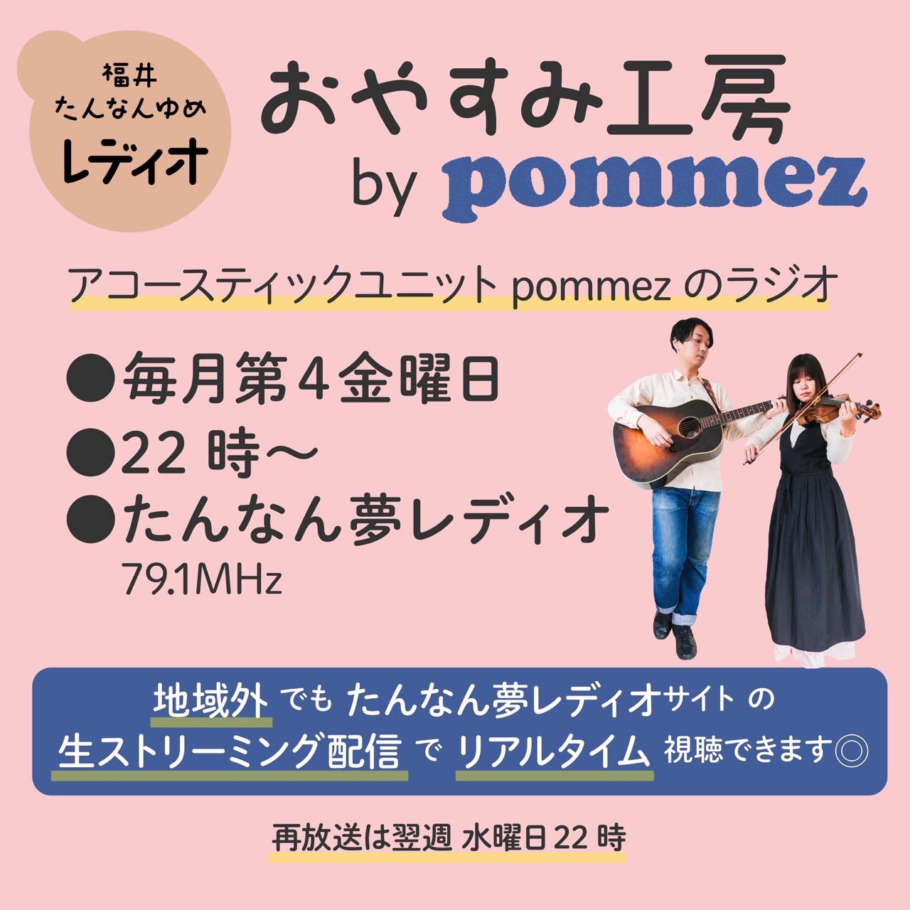 毎週金曜日、福井県鯖江市のたんなん夢レディオで22時よりオンエアーしている、おやすみ工房!